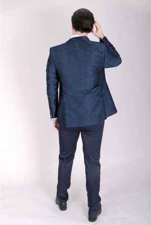 Acest costum bărbătesc format din 3 piese, culoare royal blue cu imprimeu în relief atât pe sacou cât și pe vestă, accesorizat cu papion din același material, este perfect pentru evenimente elegante și sofisticate, cum ar fi nunți sau baluri. Imprimeul subtil în relief și culoarea vibrantă îi oferă un aspect deosebit și îl fac să iasă în evidență într-un mod subtil și elegant.